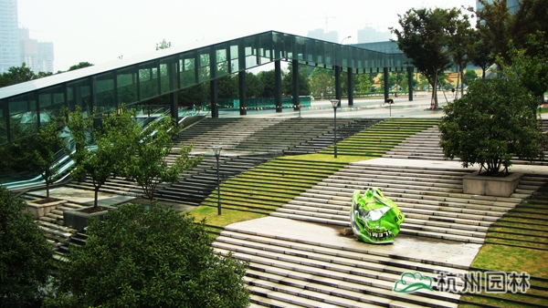 該工程東臨新業(yè)路,西至解放東路,北倚杭州市市民中心,工程占地 5.1公頃,內(nèi)容包括地面花崗巖及木地板鋪裝,臺階花崗巖鋪裝,臺階水池、兩翼水池鋪裝,種植土更換,喬木種植,草皮鋪種等。工程將現(xiàn)代科技和園林藝術(shù)完美交融,是杭州走向錢塘江時代的創(chuàng)新力作。
