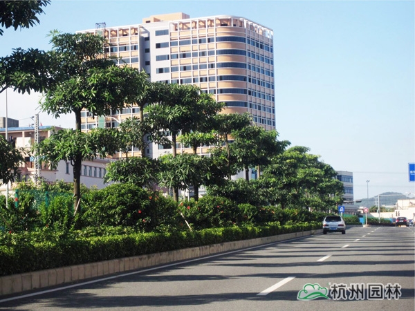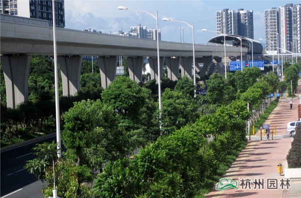該工程位于國(guó)道205深圳段龍崗區(qū)地鐵三號(hào)線愛聯(lián)地鐵站至坪地與惠州市交界處,施工內(nèi)容包括綠化種植、綠化噴灌與管道安裝等。植物配置遵循適地適樹的原則,并充分考慮與城市風(fēng)格的吻合,兼顧多樣性和季節(jié)性,通過多層次、多品種的搭配,營(yíng)造出處處有綠葉、無處不飛花,一路風(fēng)景變化萬千的城市景觀帶。