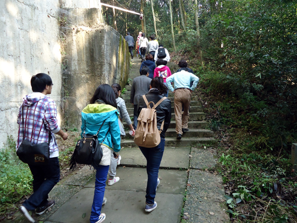 一路上,臺(tái)階時(shí)高時(shí)低,地勢(shì)時(shí)陡時(shí)緩,很快,就有人喊著走不動(dòng)了,而有人則依然健步如飛……大隊(duì)人馬很快分散成了一條長長的隊(duì)伍,在蜿蜒的山路中向著高處奮勇攀登!