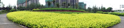 據(jù)高經(jīng)理介紹,該工程是壽光市2009年的一項重點市政工程,本著綠色、生態(tài)、自然的原則,在保留部分大樹的基礎(chǔ)上,對道路景觀進行了全新改造。工程由北至南,依次設(shè)置下沉廣場、北廣場、南廣場、方形廣場等多個景觀節(jié)點,每個節(jié)點的植物配置、地面鋪裝等都各不相同,形成一個個獨具特色的小場景;同時,又通過錯落有致的植物搭配、蜿蜒曲折的游憩步道,將整個工程貫穿起來,使得整體的景觀效果統(tǒng)一中富于變化,開闊中層次分明。