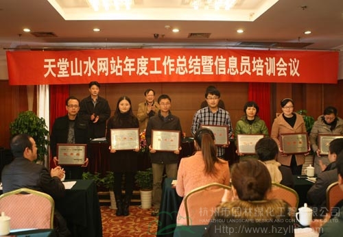 會(huì)議的重要環(huán)節(jié)之一為表彰先進(jìn)。徐協(xié)平宣讀獲獎(jiǎng)文件之后,周定炎、徐協(xié)平、繆梓倫為獲得2012年度“天堂山水”門戶網(wǎng)站的十佳單位、先進(jìn)個(gè)人、優(yōu)秀子網(wǎng)站進(jìn)行了頒獎(jiǎng)。其中,杭州市園林綠化工程有限公司網(wǎng)站被評為“優(yōu)秀子網(wǎng)站”,于會(huì)蓮?fù)颈辉u為信息宣傳工作“先進(jìn)個(gè)人”。