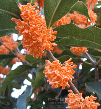 “火煉金丹”桂花:常綠小喬木,高3-5米,冠形、葉型似金球桂,觀賞性狀良好;零星分布于江蘇、浙江、江西一帶,適應(yīng)性廣泛。本品種花冠裂片邊緣金黃色,其他部分橙黃色,為桂中珍品,用于園林綠化點(diǎn)綴,效果極佳。