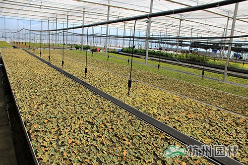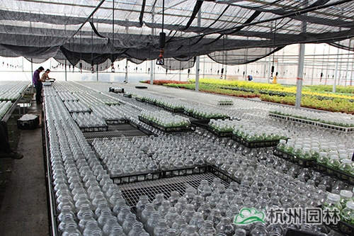 杭州畫境種業(yè)有限公司徑山基地基礎(chǔ)建設(shè)已于2014年基本完工,包括蔭棚地塊建設(shè)、基質(zhì)攪拌、辦公室、倉庫等,其中,新建的溫室大棚已全面投入使用,由公司自行組培的16萬棵火焰南天竹也進(jìn)入了煉苗階段,畫境種業(yè)的員工和工人們一起,通力合作,爭取以最高的效率完成煉苗工作,總經(jīng)理黃民強(qiáng)也親臨現(xiàn)場,給大家指導(dǎo)與支持。在領(lǐng)導(dǎo)的關(guān)心下,大家信心倍增,計劃在一周內(nèi)完成全部煉苗工作?;鹧婺咸熘?,是公司組培研發(fā)生產(chǎn)的新品種,它植株低矮,枝葉密集;幼葉及冬季葉亮紅色至紫紅色,初秋葉變紅色,比南天竹紅色葉深,變色期早;喜溫暖濕潤、通風(fēng)良好的半陰環(huán)境,較耐寒,生長較快,在園林景觀中的應(yīng)用比較廣泛。