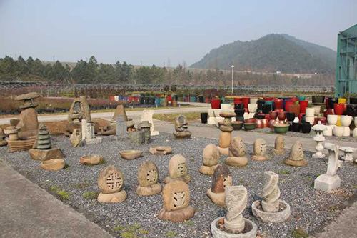 陶罐組合、山石組合其外緣線比較自然,一般不再單獨圍護。