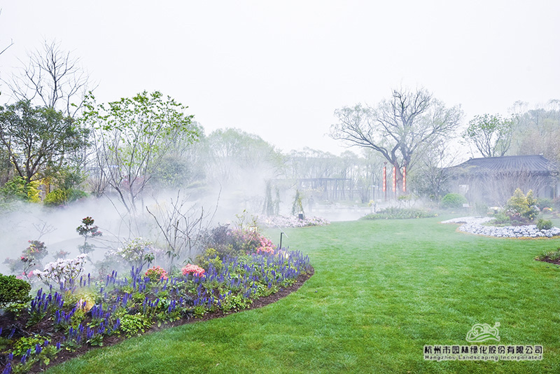 “延慶空氣干燥,而浙江園內(nèi)的植物,基本來(lái)自氣候溫潤(rùn)的南方,因此,如何有效保水和增加空氣濕度,以此來(lái)提高植物的成活率和保證后期生長(zhǎng),是我們施工時(shí)必須要考慮的問(wèn)題?!眳切〕烧f(shuō),“所以,園內(nèi)我們一共做了四套系統(tǒng),大樹(shù)根部的滴灌系統(tǒng)和樹(shù)上的噴灑系統(tǒng),大草坪的澆灌系統(tǒng),以及針對(duì)全園的霧森系統(tǒng)?!?/div>