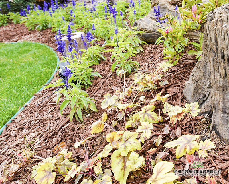 除了土壤改良,裸露地面還鋪了一層棕色覆蓋物,這是一種用樹(shù)皮深加工成的新型產(chǎn)品,里面加入了有利于植物生長(zhǎng)的營(yíng)養(yǎng)成分。不但具有美觀的作用,而且可以有效防止水分蒸發(fā)和水土流失,冬天則具有保溫作用,防止植物根系凍傷。