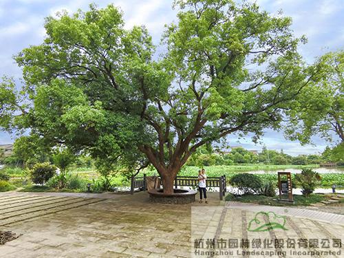 村前的小公園,是村民飯后散步、乘涼的好去處。用舊青磚搭配舊瓦片、老石板、老石磨等營(yíng)造的低矮景墻,在劃分空間的同時(shí),更成為一種懷舊情感的寄托,與白墻黑瓦的建筑遙相呼應(yīng),營(yíng)造出古樸、寧?kù)o的氛圍。幾株大香樟樹(shù)枝繁葉茂,灑下一地綠蔭,成為村民乘涼的好去處,它們陪伴村民走過(guò)了幾十年的風(fēng)雨,見(jiàn)證了村莊的發(fā)展變遷,寄托著村民的鄉(xiāng)愁。為了保護(hù)它們,施工時(shí)禁止大型機(jī)械進(jìn)場(chǎng),全部采用人工作業(yè),并在周邊進(jìn)行保護(hù),搭建防腐木樹(shù)池坐凳,既可以保護(hù)大樹(shù),又可供村民在此閑坐。植物配置充分考慮當(dāng)?shù)氐拿耧L(fēng)民俗,聽(tīng)取村民意愿,種植枇杷、桃樹(shù)、梨樹(shù)、蘋(píng)果樹(shù)、紅葉李、柿子樹(shù)等果樹(shù),搭配桂花、無(wú)患子、銀杏等鄉(xiāng)土樹(shù)種,營(yíng)造出濃郁的鄉(xiāng)村田園風(fēng)情。