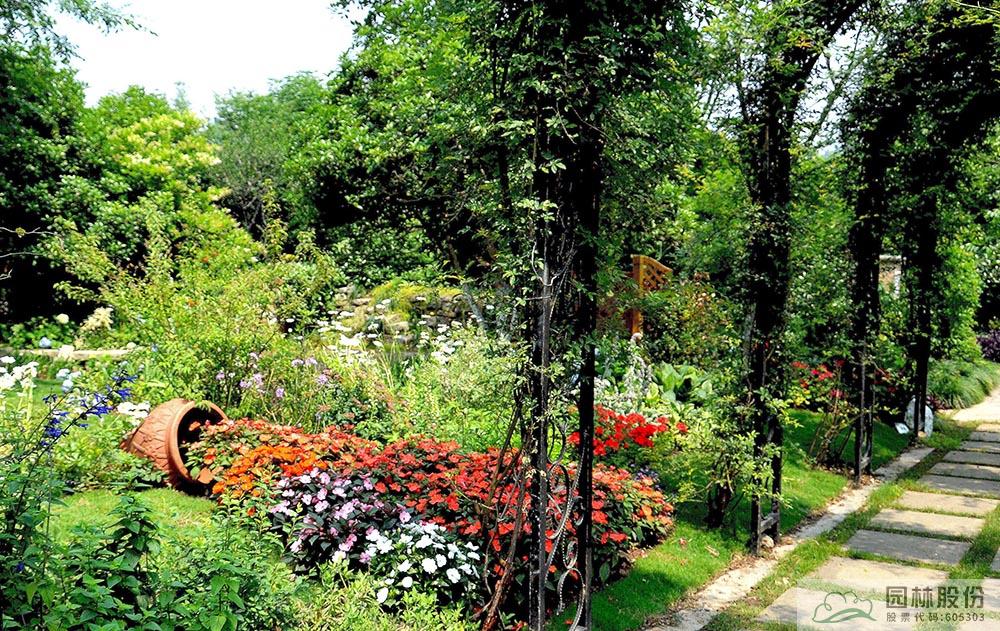 2017年,張楠主持設(shè)計(jì)與施工的“首屆中國花境競(jìng)賽”參賽作品《花溪疊翠·芳滿庭》,位于臨安青山湖花園中心室外景觀展示區(qū),在現(xiàn)有庭院布局基礎(chǔ)上,外圍景觀結(jié)合木香藤架,打造林蔭、陶罐花溪、鼠尾草等景觀系列,營造百花齊放、芳菲無數(shù)滿庭院的意境;內(nèi)部則用櫸樹、景石、石籠擋墻及園路圍合成半開敞空間,以八仙花為主材、搭配鳶尾、石榴、落新婦、百子蓮等,打造3個(gè)花境組團(tuán),營造人們熱愛生活、向往美好的鄉(xiāng)村私密花園美景。歷經(jīng)數(shù)月的精心施工、養(yǎng)護(hù)與專家評(píng)比,該作品從43個(gè)參賽作品中脫穎而出,榮獲“首屆中國花境競(jìng)賽金獎(jiǎng)”。