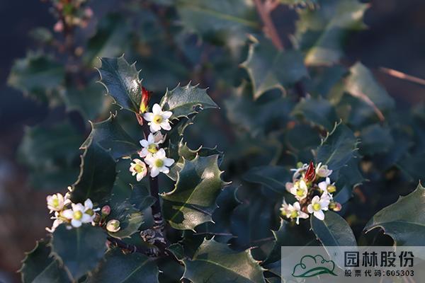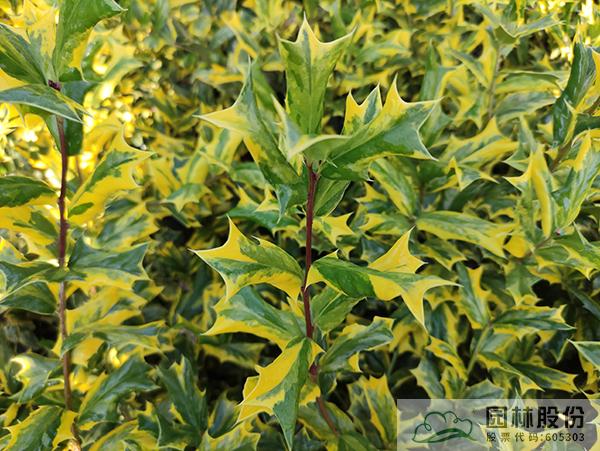 花葉枸骨Ilex cornuta 'O Spring':它的母本是我國(guó)最為常見(jiàn)的的枸骨,經(jīng)常在溝壑、丘陵和山路旁發(fā)現(xiàn)其存在。由俄克拉荷馬州的一名苗圃工人Otto Spring發(fā)現(xiàn)的變異。常綠灌木或小喬木,屬于雄性植株。葉厚革質(zhì),有光澤,葉形呈四角狀長(zhǎng)圓形,葉緣常反曲,在春季,葉緣呈現(xiàn)黃油色調(diào),到了秋冬季則會(huì)變成金黃色,莖稈也會(huì)變成紫色。適合種植在庭院、公園、街道等地方,可以作為綠籬植物使用,也可以修剪成小樹(shù)的形狀。對(duì)土壤適應(yīng)性較強(qiáng),幾乎可以在任何土壤中生長(zhǎng),而且具有耐干旱和高溫的特性。因此,它是一種簡(jiǎn)單耐用的冬青品種。