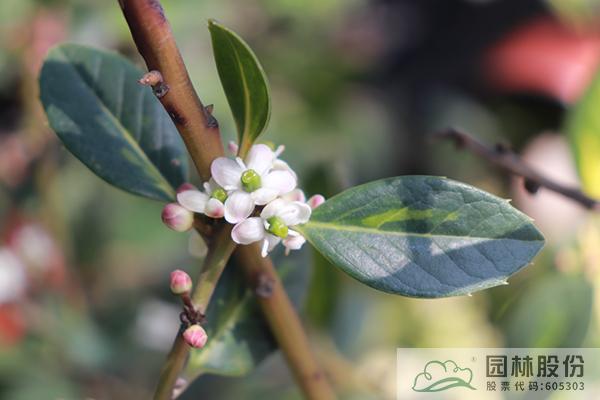 其中,彩葉冬青更是其中的佼佼者。除了果實(shí)可供觀賞外,它們還擁有黃色葉、藍(lán)綠色葉和銀邊葉等彩色葉片。葉形變異也是相當(dāng)豐富,具四角狀,橢圓形,倒卵形等多種形狀;有些品種具有刺狀葉片,而有些則是光滑的葉片;有些品種葉緣還具有波浪狀的起伏。四季景觀分明,在春季,它們的莖腋間會(huì)簇生出一朵朵清新可愛(ài)的小花;而在當(dāng)年生的枝條上,則會(huì)抽出亮麗的嫩葉。到了秋季,隨著氣溫的驟降,葉色會(huì)變得更加地明艷;冬季的時(shí)候,在雌性的植株枝條上,則會(huì)掛滿累累的果實(shí)。這些不同的形態(tài)和色彩變化,使得彩葉冬青在不同的時(shí)間和空間中呈現(xiàn)出不同的姿態(tài)、色彩與意境,從而提升了冬青品種的觀賞價(jià)值,成為園林景觀中重要的觀葉植物。