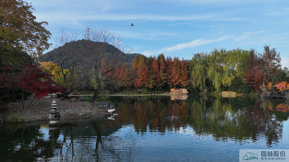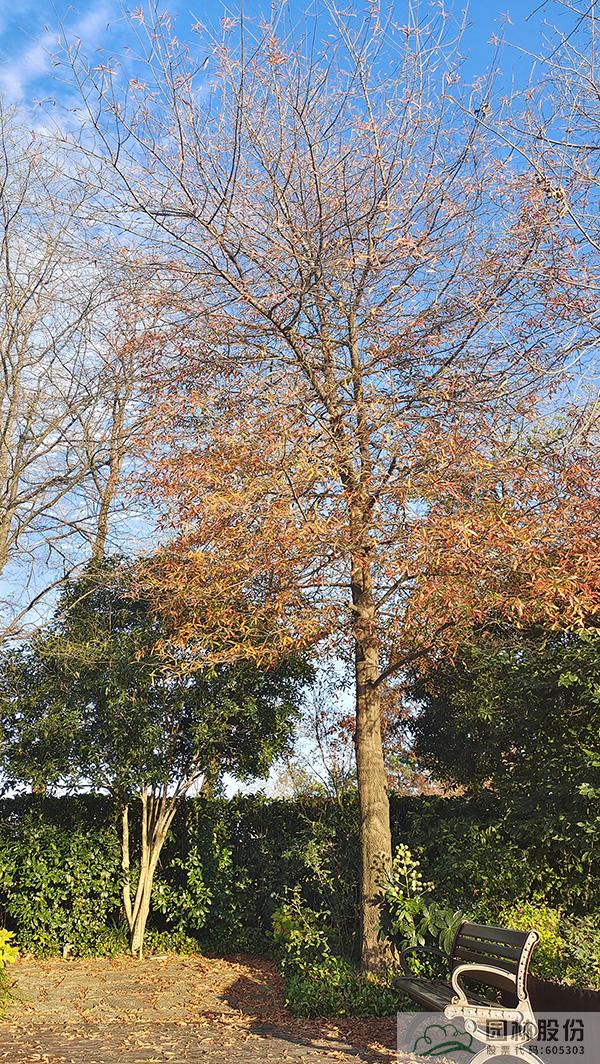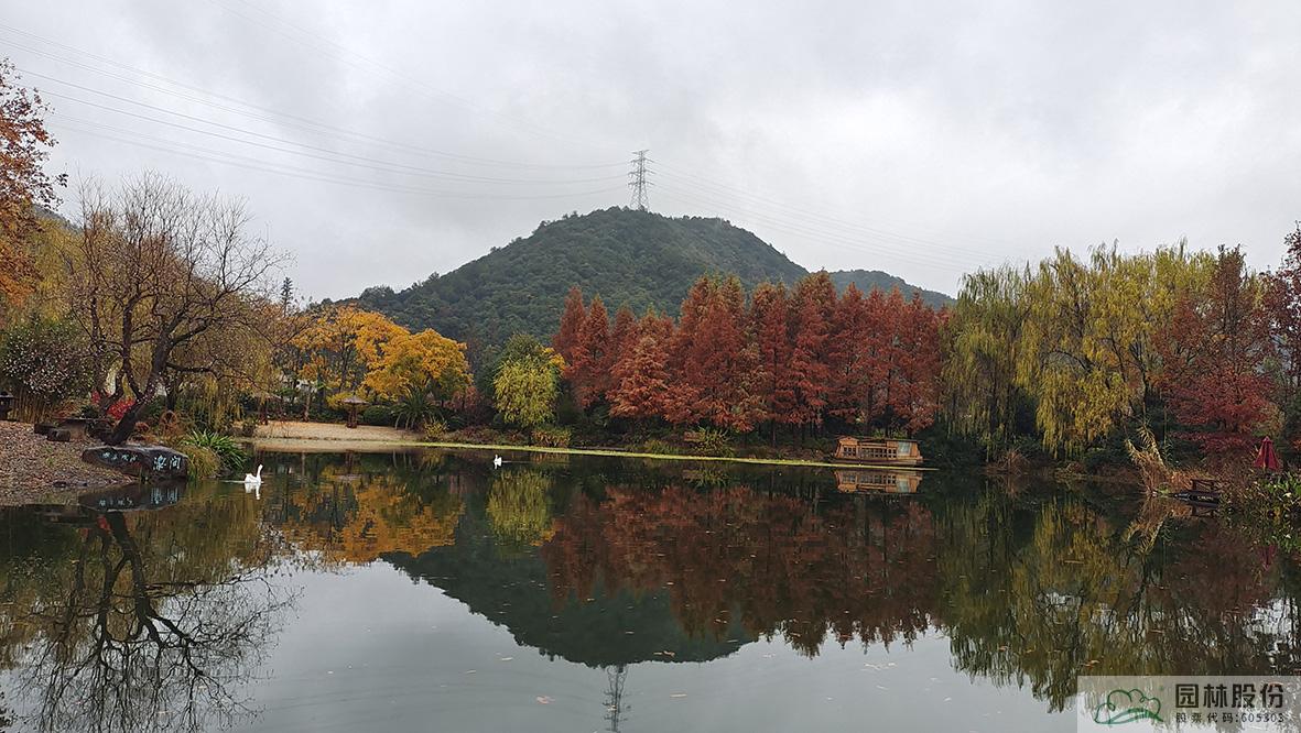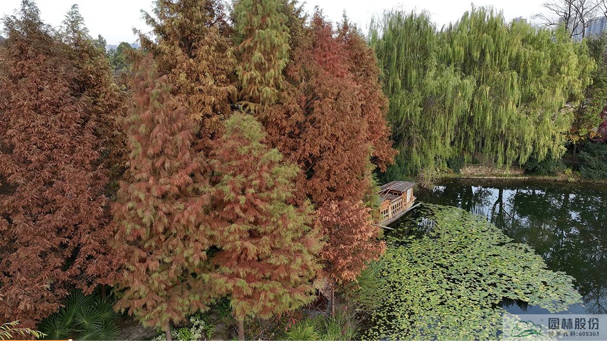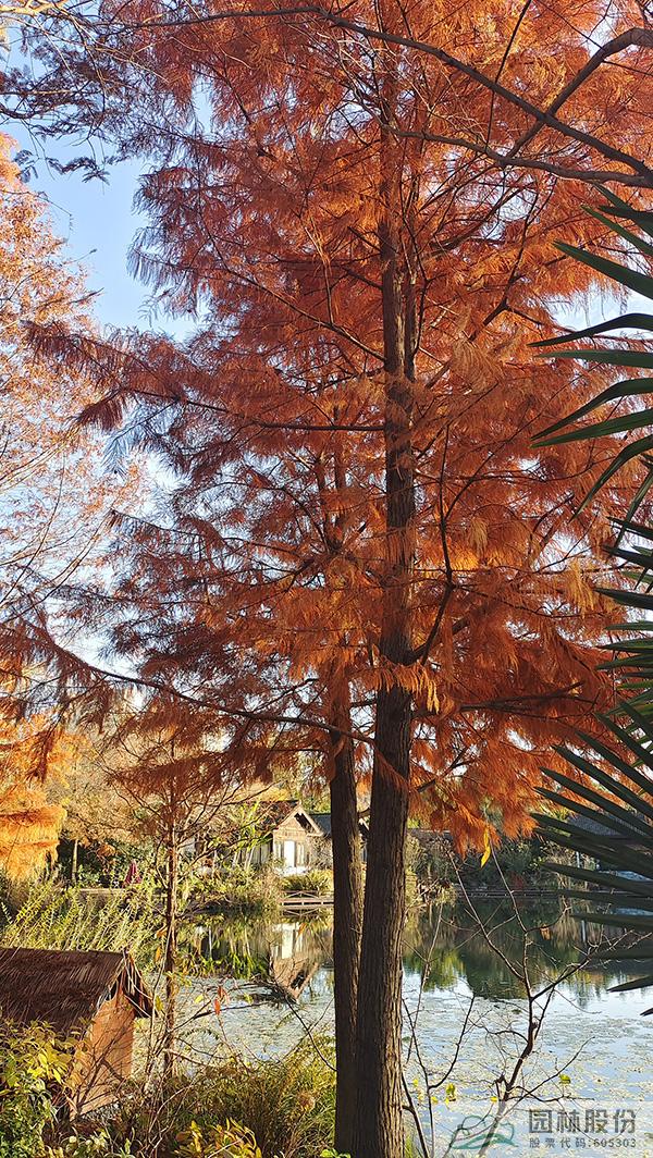 金黃的無患子、絢麗的紅楓、黃紅變換的楓香構(gòu)成了畫境園初冬繽紛世界的三部曲。半島的烏桕、池塘對岸的水杉水松池杉混交林,則如跳動的音符,共同譜寫著初冬的樂章。