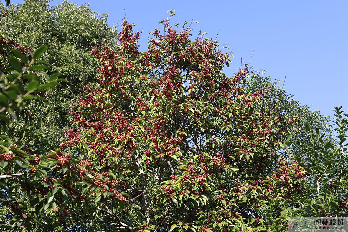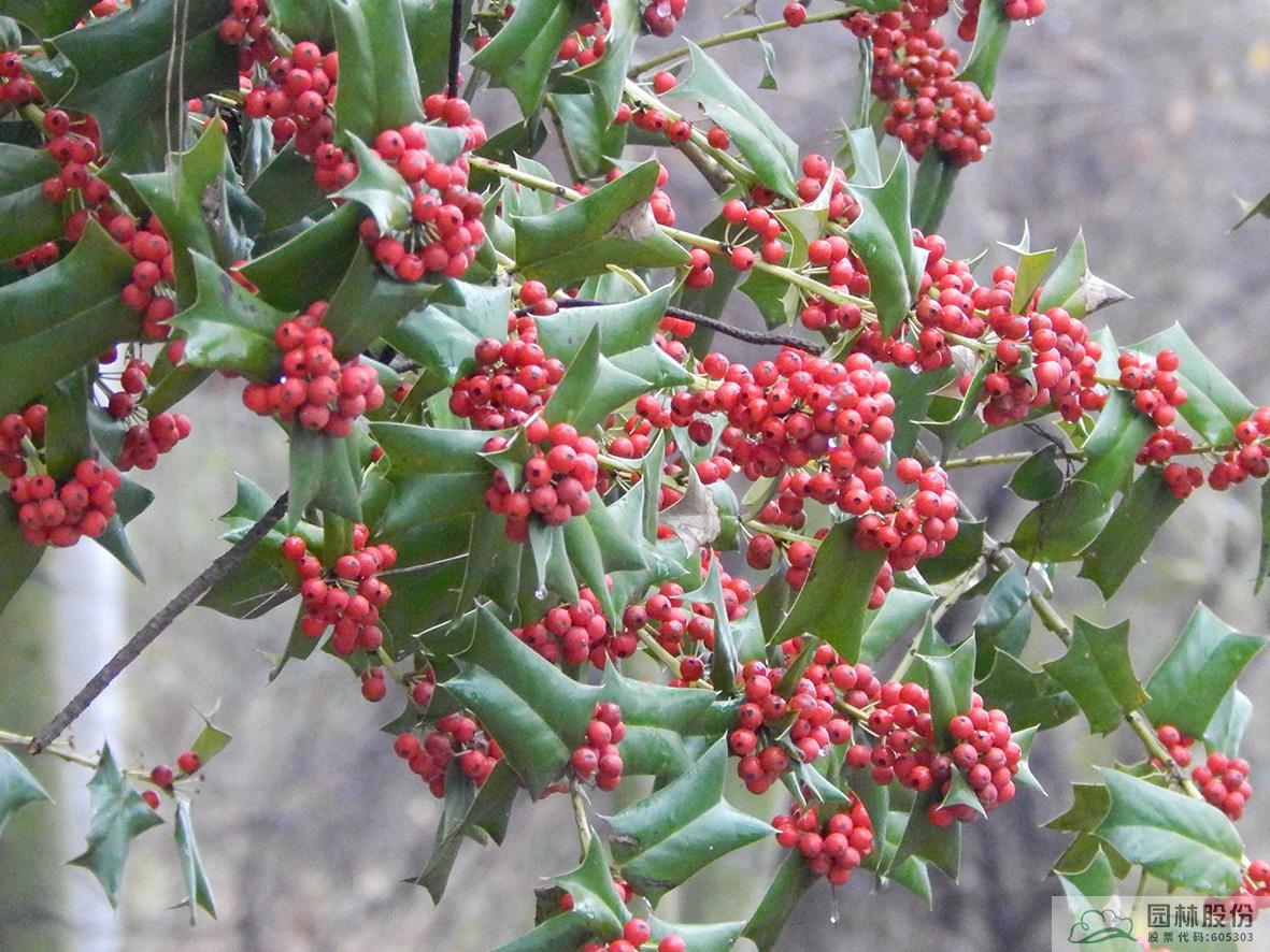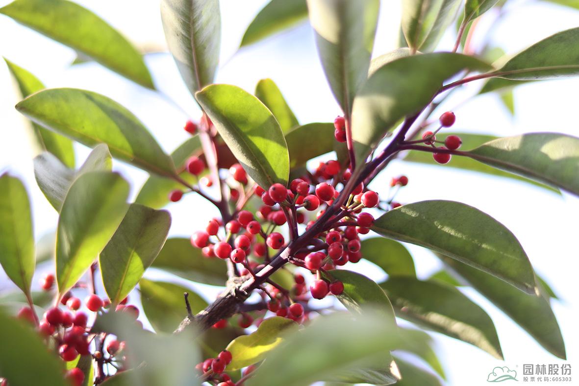 鐵冬青:其葉子四季常青,故名鐵冬青。為常綠喬木或灌木,高可達(dá)20米,葉全緣。果實(shí)紅色,紅若丹珠,小巧可人。掛果期長(zhǎng),能從10月一直持續(xù)至來(lái)年3月。因有多子多孫,興旺發(fā)達(dá)之意,在民間俗稱“萬(wàn)子千紅樹(shù)”。樹(shù)皮或根皮為中藥“救必應(yīng)”,具清熱解毒,利濕的功效。為優(yōu)良觀果樹(shù)種,適宜在園林中孤植或群植。
