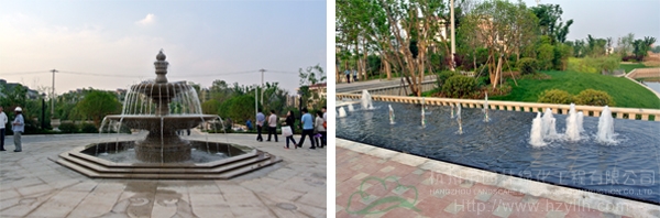 位于南京徐莊工業(yè)園內(nèi)的紫金東郡居住區(qū)景觀綠化工程剛剛俊工,項(xiàng)目經(jīng)理場(chǎng)升超帶領(lǐng)大家參觀了現(xiàn)場(chǎng),并針對(duì)工程中的園路鋪裝、植物配置、水景設(shè)置等進(jìn)行了講解。為了突出江南水鄉(xiāng)的特色,工程中的水景元素運(yùn)用比較多,從大門(mén)口的水池、噴泉雕塑,到不同風(fēng)格的小型水景,使小區(qū)的整體景觀變得更加生動(dòng),更為即將到來(lái)的炎炎夏日增添了幾許清涼。