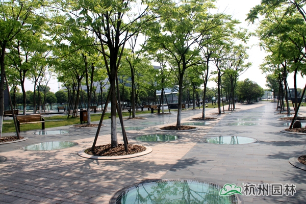 該工程東臨新業(yè)路,西至解放東路,北倚杭州市市民中心,工程占地 5.1公頃,內(nèi)容包括地面花崗巖及木地板鋪裝,臺階花崗巖鋪裝,臺階水池、兩翼水池鋪裝,種植土更換,喬木種植,草皮鋪種等。工程將現(xiàn)代科技和園林藝術(shù)完美交融,是杭州走向錢塘江時代的創(chuàng)新力作。
