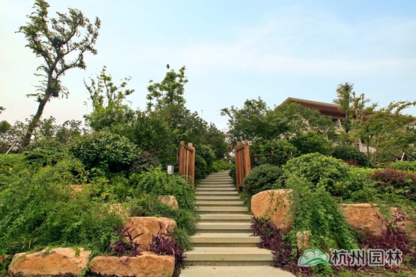 該工程位于江蘇吳江松陵鎮(zhèn)濱湖路三船河大橋附近,內(nèi)容包括綠化種植、硬質(zhì)鋪裝、園路施工、景觀小品工程、樁基工程、景觀照明系統(tǒng)等。在植物配置上,將中國園林的自然式手法與英國園林的自然式風(fēng)格相結(jié)合,營造出亦古亦今、中西混搭,整體恢宏大氣、局部婉約精致的高端酒店景觀。該工程榮獲“2014年度中國優(yōu)秀園林綠化工程大金獎”。