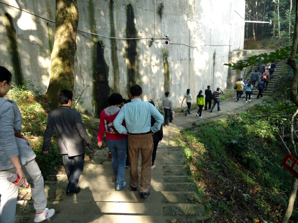 一路上,臺(tái)階時(shí)高時(shí)低,地勢(shì)時(shí)陡時(shí)緩,很快,就有人喊著走不動(dòng)了,而有人則依然健步如飛……大隊(duì)人馬很快分散成了一條長長的隊(duì)伍,在蜿蜒的山路中向著高處奮勇攀登!