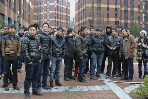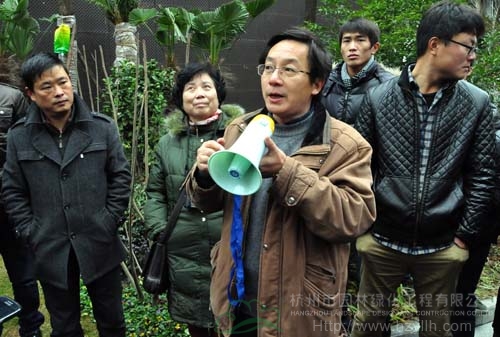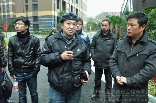 每到一個工程現(xiàn)場,工地負責人都先介紹工程的施工情況,然后,帶領(lǐng)大家進行參觀,并隨時解答觀摩組一行提出的各種問題。每項工程觀摩結(jié)束的時候,三位專家都會集中點評,從苗木種植、植物搭配、水景營造、地形整理等各方面指出工程施工中存在的優(yōu)勢與不足,并提出需要改進的地方。