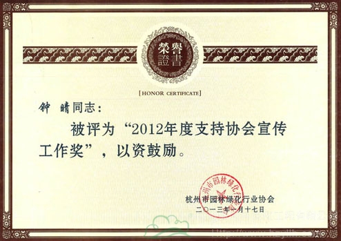 鐘晴、梁夕雯兩位同志榮獲杭州市園林綠化行業(yè)協(xié)會2012年度宣傳工作先進個人稱號
