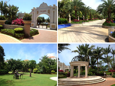 走進(jìn)森海灣,紅瓦白墻、單邊回廊的建筑設(shè)計(jì),與郁郁蔥蔥的植物一起,構(gòu)建了一個(gè)海灣童話城堡世界,營(yíng)造出閑適、愜意、溫馨、雅致的居住氛圍。據(jù)項(xiàng)目負(fù)責(zé)人葉偉華介紹,作為一個(gè)高端住宅區(qū),森海灣對(duì)園林景觀的要求比較高,小區(qū)以中軸景觀帶為主景,設(shè)有游泳池、休閑草坪、疊水等,種植大王椰、霸王棕、鳳凰木、重陽木、中東海棗、老人葵等大樹襯托整個(gè)中央主景。各處庭院則選擇豐富多彩的樹種,采用不同的手法布局與建筑完美融合,透露出精細(xì)的西班牙情調(diào),用簡(jiǎn)單詮釋浪漫,點(diǎn)綴悠閑的度假生活,使整個(gè)園林充盈著濃郁的熱帶風(fēng)情。
