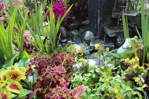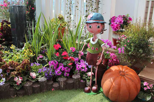 鵝卵石使溪水流淌更趨自然,美麗的鐵藝姑娘在花園中勞作。仔細看,旁邊還有青蛙王子樂隊的婉轉(zhuǎn)音樂。這些小細節(jié),增加了花境的趣味性。