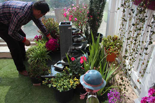 在園藝中心選購打造一米花園所需的園林小品、植物材料及其他輔材。