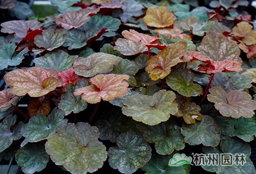 目前長勢較快的礬根、鐵筷子、巖白菜、大黃屬植物等均已陸續(xù)展葉、開花。其中礬根喜半蔭,花期4-10月,葉片色彩豐富,有的品種葉背面色彩也相當艷麗,且葉片顏色會隨季節(jié)、環(huán)境和溫度的變化而變化。礬根多用于林下花境、地被、庭院綠化,是理想的宿根花境材料。目前杭州園林已建立了多個礬根品種的的組培快繁技術體系,為其產業(yè)化生產打下堅實的基礎。