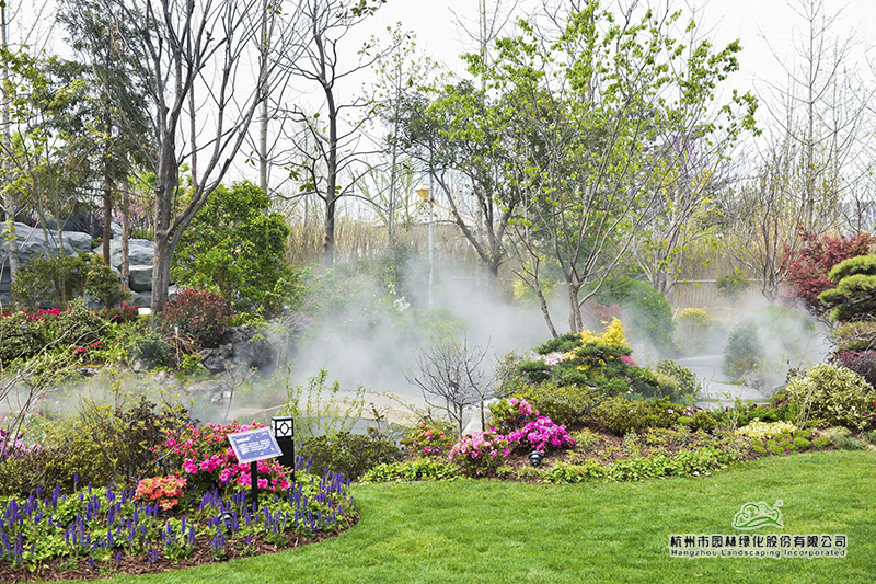 “延慶空氣干燥,而浙江園內(nèi)的植物,基本來(lái)自氣候溫潤(rùn)的南方,因此,如何有效保水和增加空氣濕度,以此來(lái)提高植物的成活率和保證后期生長(zhǎng),是我們施工時(shí)必須要考慮的問(wèn)題?!眳切〕烧f(shuō),“所以,園內(nèi)我們一共做了四套系統(tǒng),大樹(shù)根部的滴灌系統(tǒng)和樹(shù)上的噴灑系統(tǒng),大草坪的澆灌系統(tǒng),以及針對(duì)全園的霧森系統(tǒng)?!?/div>