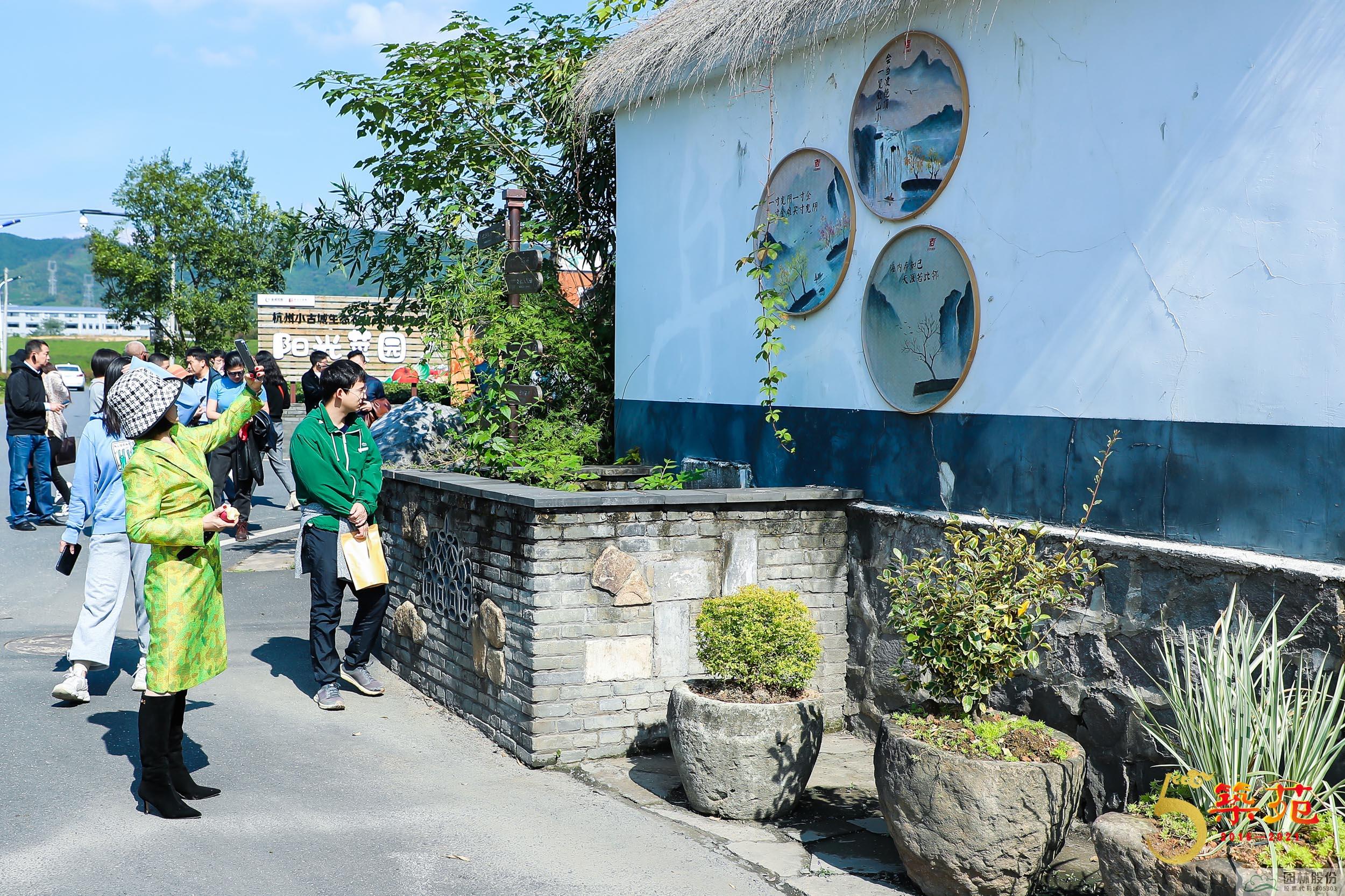 25日,與會嘉賓一起前往園林股份承建的余杭徑山小古城村和公司下屬的畫境·青山湖花園中心參觀考察。