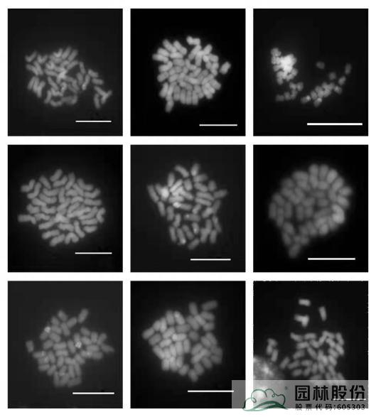圖1繡球染色體rDNA物理定位