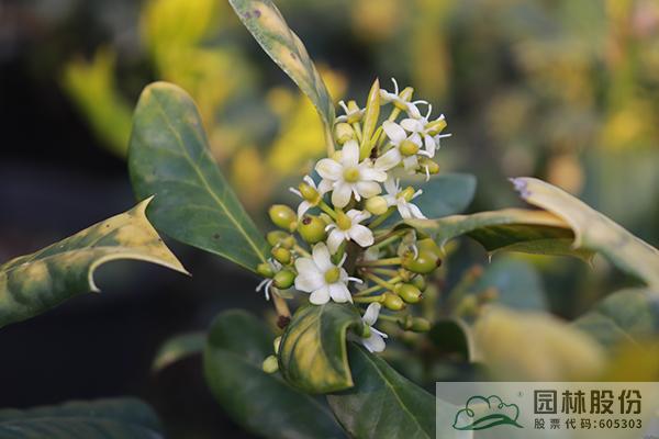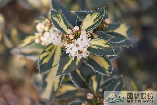 其中,彩葉冬青更是其中的佼佼者。除了果實(shí)可供觀賞外,它們還擁有黃色葉、藍(lán)綠色葉和銀邊葉等彩色葉片。葉形變異也是相當(dāng)豐富,具四角狀,橢圓形,倒卵形等多種形狀;有些品種具有刺狀葉片,而有些則是光滑的葉片;有些品種葉緣還具有波浪狀的起伏。四季景觀分明,在春季,它們的莖腋間會(huì)簇生出一朵朵清新可愛(ài)的小花;而在當(dāng)年生的枝條上,則會(huì)抽出亮麗的嫩葉。到了秋季,隨著氣溫的驟降,葉色會(huì)變得更加地明艷;冬季的時(shí)候,在雌性的植株枝條上,則會(huì)掛滿累累的果實(shí)。這些不同的形態(tài)和色彩變化,使得彩葉冬青在不同的時(shí)間和空間中呈現(xiàn)出不同的姿態(tài)、色彩與意境,從而提升了冬青品種的觀賞價(jià)值,成為園林景觀中重要的觀葉植物。