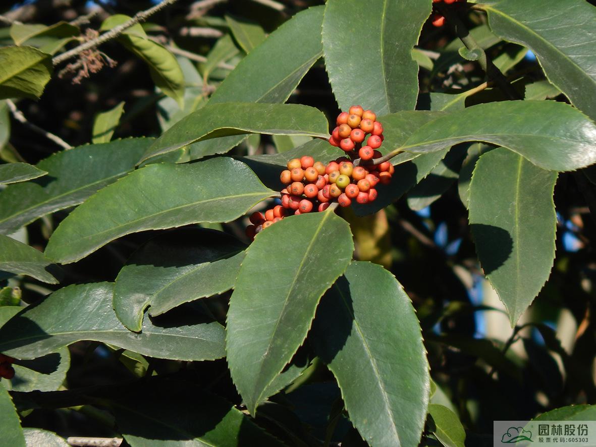 鐵冬青:其葉子四季常青,故名鐵冬青。為常綠喬木或灌木,高可達(dá)20米,葉全緣。果實(shí)紅色,紅若丹珠,小巧可人。掛果期長(zhǎng),能從10月一直持續(xù)至來(lái)年3月。因有多子多孫,興旺發(fā)達(dá)之意,在民間俗稱“萬(wàn)子千紅樹(shù)”。樹(shù)皮或根皮為中藥“救必應(yīng)”,具清熱解毒,利濕的功效。為優(yōu)良觀果樹(shù)種,適宜在園林中孤植或群植。