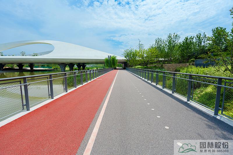 城市綠道通過鋪裝材質(zhì)區(qū)分出騎行道和跑步道。騎行區(qū)域采取瀝青材質(zhì),提高耐久度和使用壽命,有效控制成本造價。跑步道區(qū)域采用EPDM塑膠顆粒面層,提高使用舒適度,采取靚麗的色彩與騎行區(qū)域進(jìn)行區(qū)分。結(jié)合人才驛站設(shè)置瞭望臺,游人在此可小憩補充體力,也可登高俯瞰河道景觀。造型獨特的驛站和瞭望臺也是河道上的一處風(fēng)景。