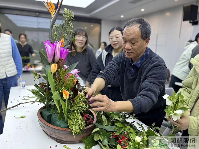 隨后,一場(chǎng)別開(kāi)生面的插花藝術(shù)課堂拉開(kāi)帷幕。江志清大師以生動(dòng)的語(yǔ)言,從插花藝術(shù)的基礎(chǔ)理論、色彩搭配技巧到花材處理方法等,娓娓道來(lái)?,F(xiàn)場(chǎng)的女性員工們認(rèn)真聆聽(tīng),不時(shí)記錄要點(diǎn),沉浸在花藝的美學(xué)世界里。理論學(xué)習(xí)之后,大家以六人為一組,在江志清大師的指導(dǎo)下,動(dòng)手進(jìn)行插花創(chuàng)作。剪刀輕剪,花枝舒展,巧手翻飛間,一朵朵鮮花被賦予了新的生命。大家自由發(fā)揮創(chuàng)意,將普通的花材變成一件件獨(dú)具匠心的花藝作品?;顒?dòng)現(xiàn)場(chǎng)花香四溢,歡聲笑語(yǔ)不斷,每一位女性都在創(chuàng)作中找到了屬于自己的那份寧?kù)o與自信,更在團(tuán)隊(duì)協(xié)作中增進(jìn)了彼此的溝通與默契。