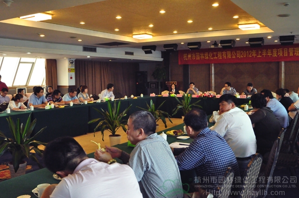 5月26日,杭州市園林綠化工程有限公司在田園賓館八樓會議廳召開了“2012年上半年度項目管理交流會”,市場部經(jīng)理傅磊主持會議。各分公司、項目部及相關部門共六十多人參加了會議,董事長吳光洪、副總經(jīng)理陳伯翔、總經(jīng)理助理吳憶明等領導出席。
