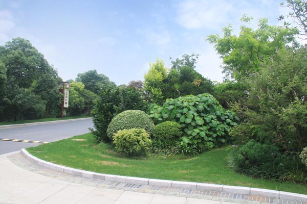 別墅小區(qū)公共景觀的植物配置不但要與建筑、環(huán)境相協(xié)調(diào),還要做到多層次、多樣化、多季相,并創(chuàng)造出植被生態(tài)景觀及其圍合空間的豐富多彩,達(dá)到人與環(huán)境的和諧統(tǒng)一,因此,植物的選擇與配置顯得尤為重要。據(jù)徐建良介紹,工程中的植物選擇與配置遵循三個(gè)原則:第一,根據(jù)地域特征,考慮季相變化;第二,根據(jù)建筑空間的大小、遠(yuǎn)近,近景或端景配置觀賞性強(qiáng)的品種,遠(yuǎn)景的植物配置則充分考慮空間天際線(xiàn)及建筑物之間的關(guān)系;第三,充分考慮林下植物和孤賞植物布置的各個(gè)方面,突出自然生長(zhǎng)特征和人工修整造型植物之間的反差對(duì)比。以此為指導(dǎo),上層空間選擇了香樟、合歡、玉蘭、樸樹(shù)、銀杏等大規(guī)格喬木,中下層空間種植紅葉石楠、枸骨、杜鵑、鋪地柏、火棘等花灌木和地被,再配以微地形的處理,整個(gè)植物造景的林冠線(xiàn)、林緣線(xiàn)及空間層次別具特色,從而使得別墅區(qū)的整體景觀層次分明、色彩豐富,既在統(tǒng)一中富于變化,每個(gè)區(qū)域又自成風(fēng)格。特別是每個(gè)路口的花境營(yíng)造,更為小區(qū)增添一抹亮色。
